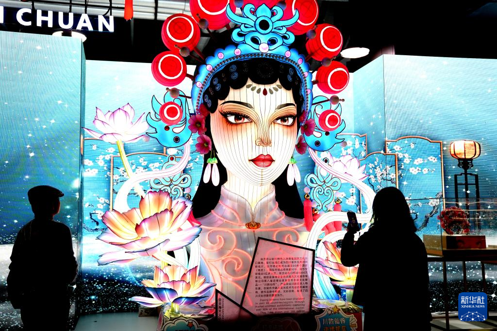 11月7日,首发首秀艺术作品“川剧仙伶”在第八届进博会四川展区吸引观众参观。新华社记者 张建松 摄