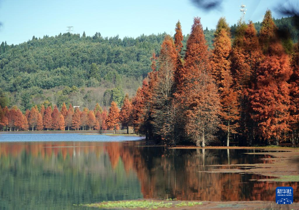 11月28日在云南省昆明市西山区三家村水库拍摄的水杉。新华社发(梁志强摄)