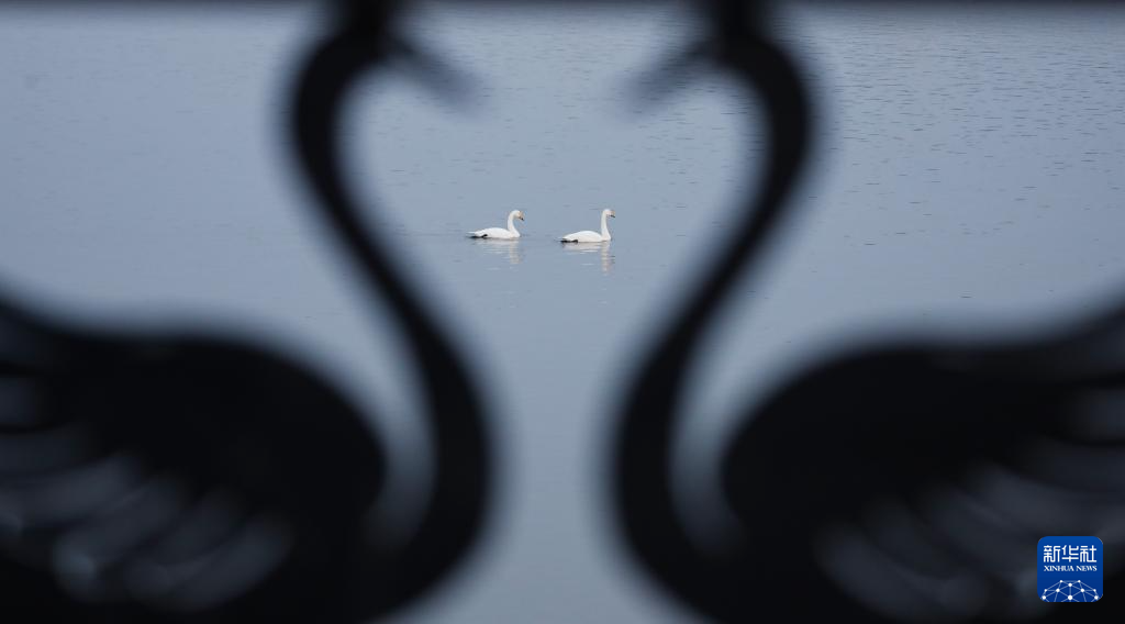 12月20日在河南省三门峡市天鹅湖国家城市湿地公园拍摄的白天鹅。新华社发(冯小敏摄)