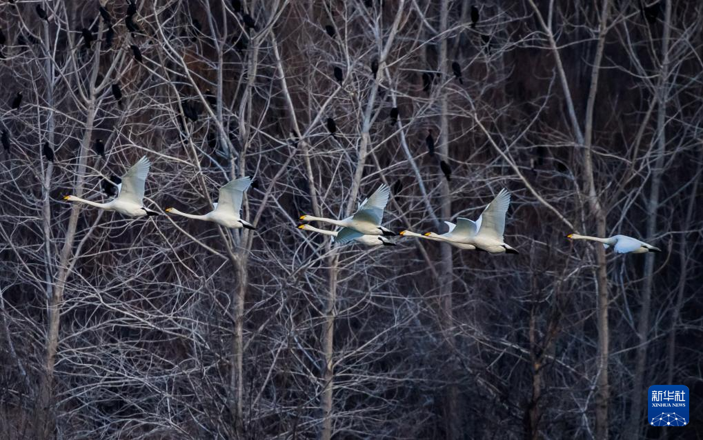 12月20日在河南省三门峡市天鹅湖国家城市湿地公园拍摄的白天鹅。新华社发(赵永涛摄)