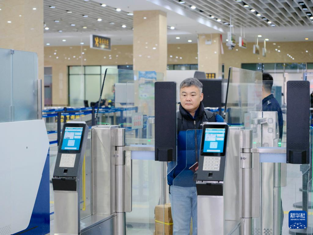 12月22日,在内蒙古二连浩特公路口岸联检大厅,旅客从快捷通道通关。新华社记者 马金瑞 摄