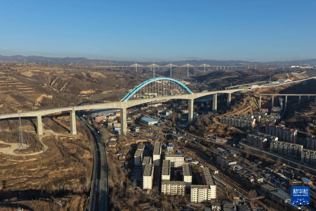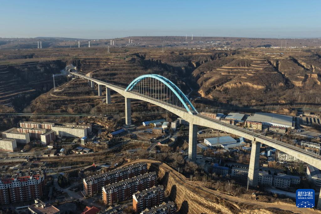 12月25日拍摄的西延高铁王家河特大桥(无人机照片)。新华社记者 邢广利 摄