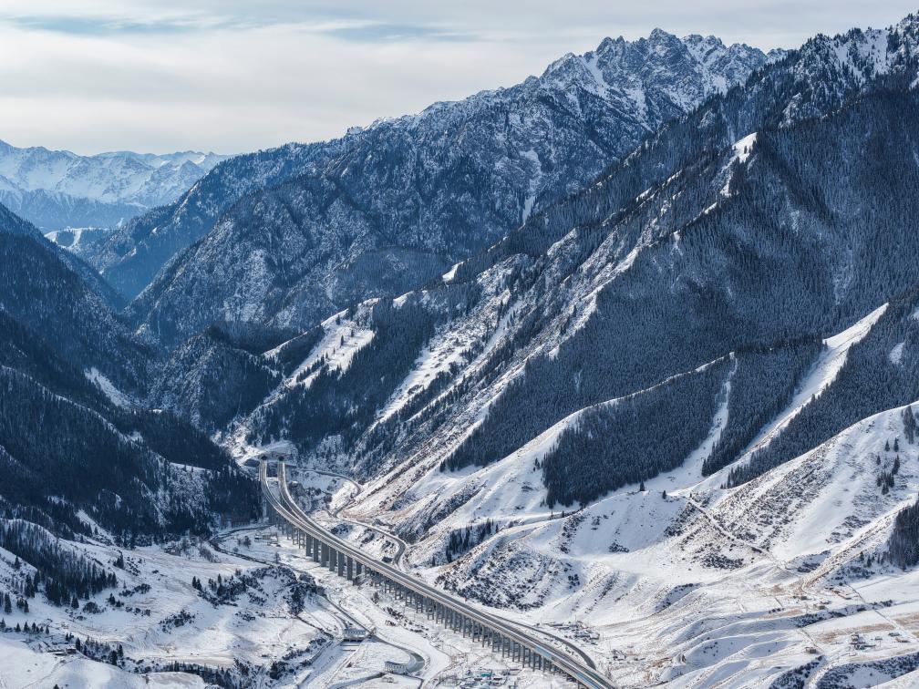 乌尉高速公路穿越天山山脉(2025年12月20日摄)。新华社记者 胡虎虎 摄