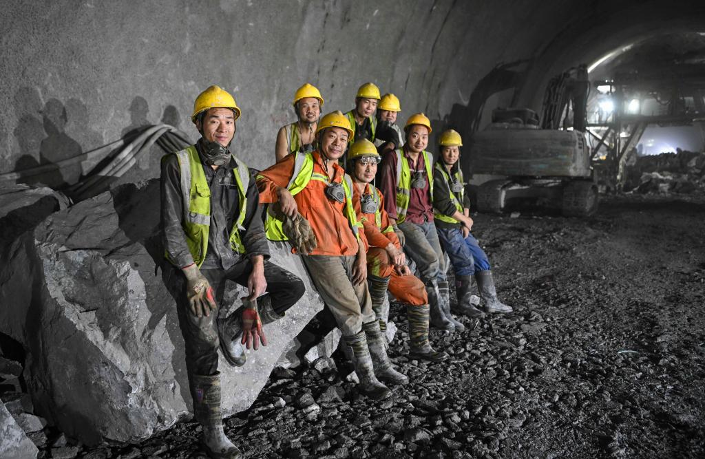 参与天山胜利隧道建设的工人在隧道内休息(2024年12月25日摄)。新华社记者 胡虎虎 摄