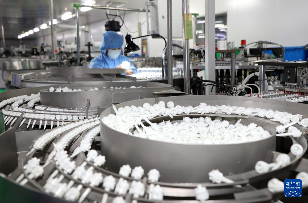 12月31日,山东省滨州市博兴县庞家镇一家医疗器械公司的工人在进行生产作业。新华社发(陈彬摄)