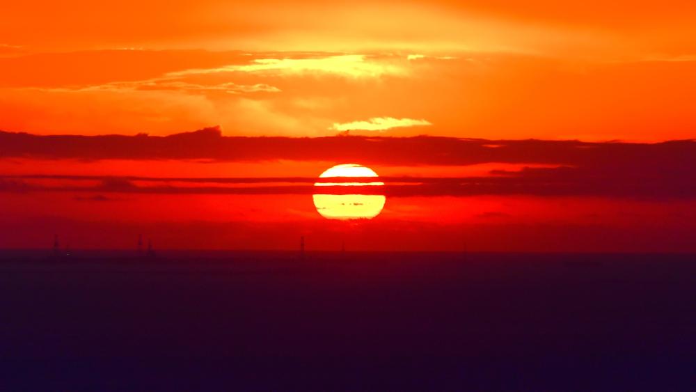 这是2026年1月1日在阿塞拜疆首都巴库的里海边拍摄的日出。
