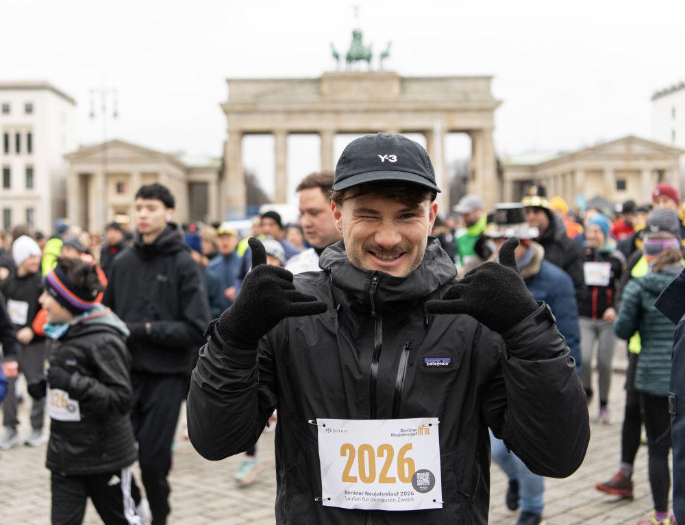 2026年1月1日,一名男子在德国首都柏林的勃兰登堡门附近参加新年跑活动。