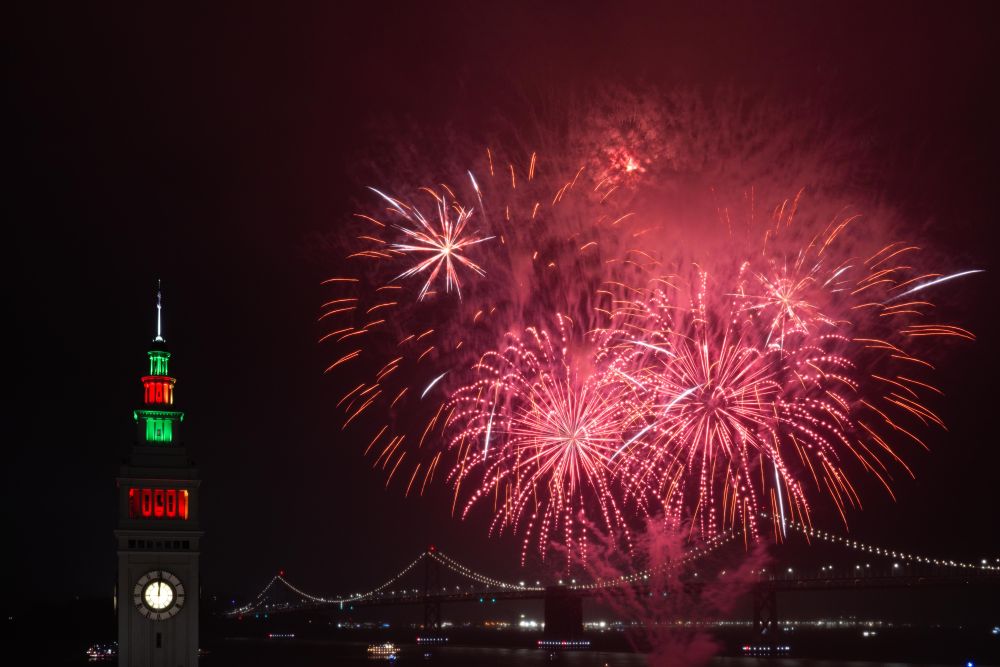 2026年1月1日,新年烟花在美国加利福尼亚州旧金山上空绽放。