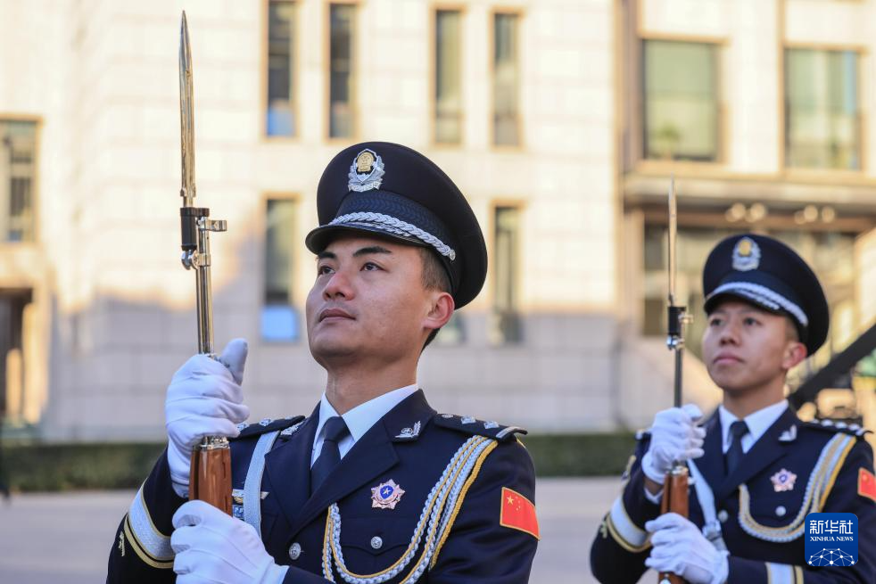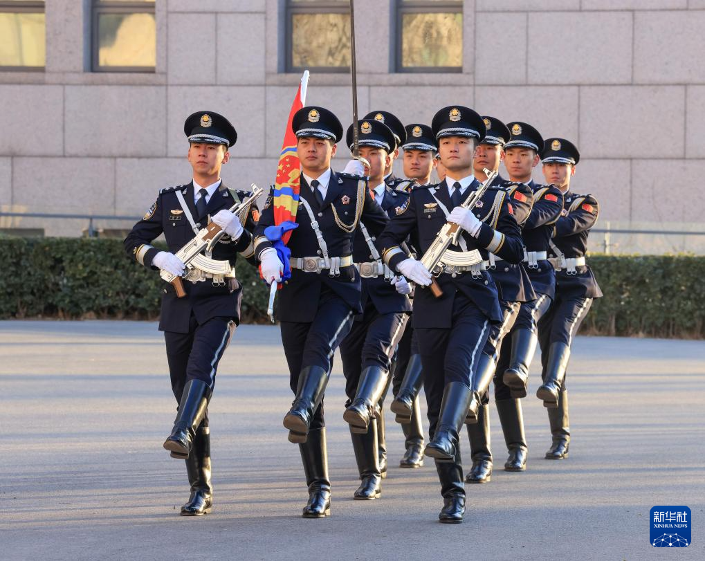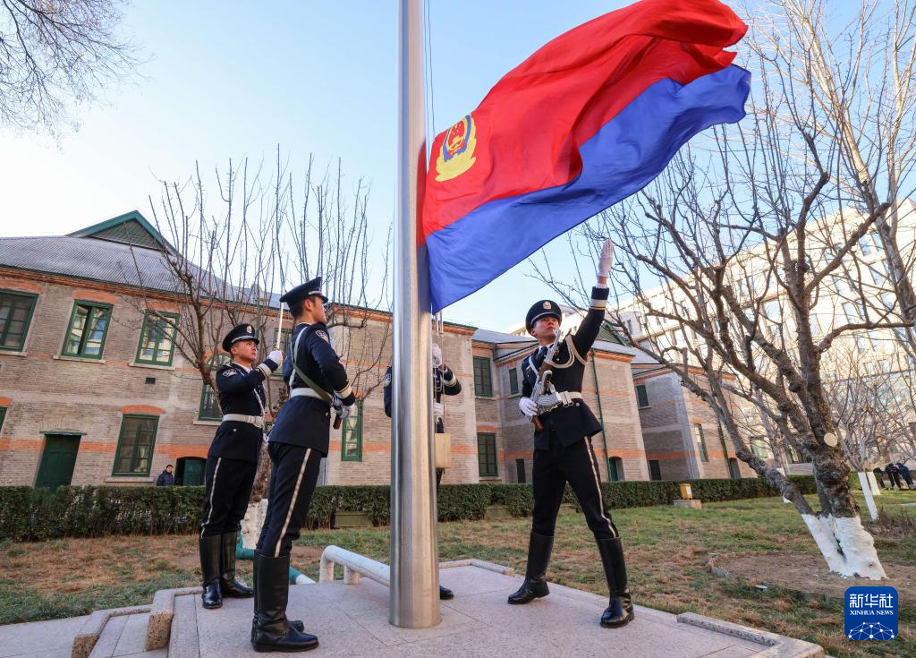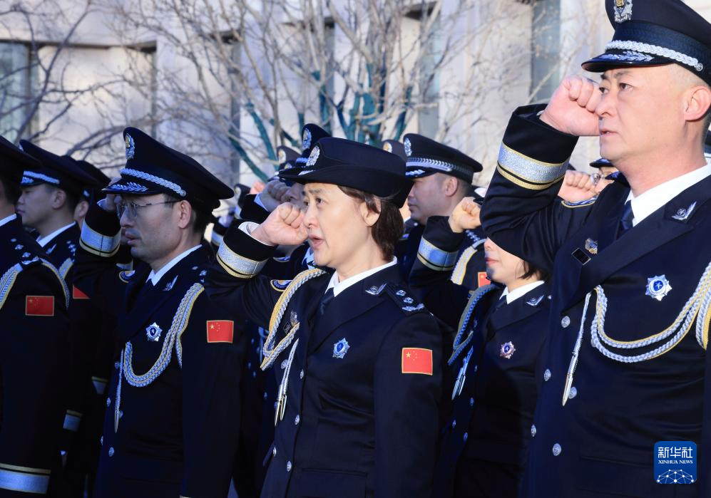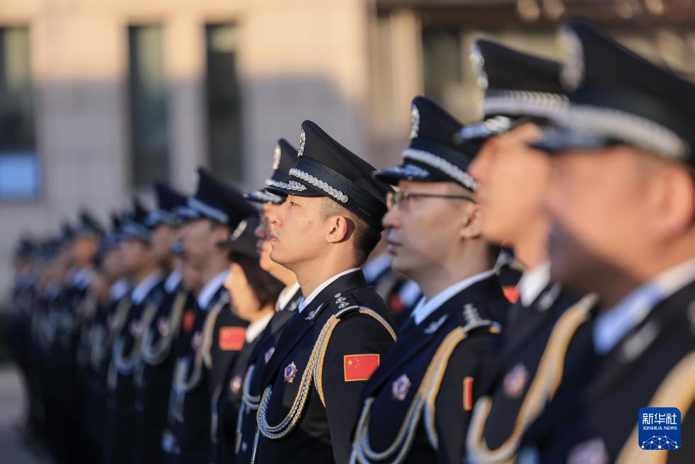 1月10日,公安部举行升警旗仪式,庆祝第六个中国人民警察节。200余名代表整齐列队,向警旗敬礼,高唱《中国人民警察警歌》,并重温公安机关人民警察誓词。新华社记者 殷刚 摄影报道