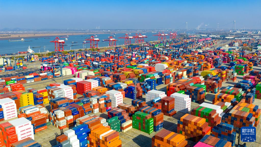 1月14日拍摄的江苏省港口集团南京港龙潭港区生产场景。新华社发(辛一 摄)
