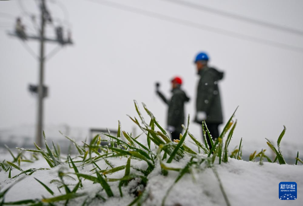 1月19日,在河南省商丘市夏邑县会亭镇,国网夏邑县供电公司工作人员在巡检线路。新华社发(王高超摄)