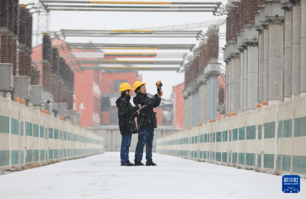 1月19日,在河南省焦作市温县220千伏拳乡变电站,工作人员利用红外测温仪对供电设备进行测温测负。新华社发(黄福兴摄)