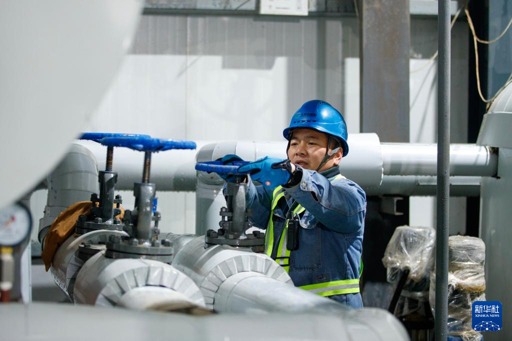 1月18日,热力公司员工在河南省商丘市睢县集中供暖首站对供热设备进行检修维护。新华社发(徐泽源摄)