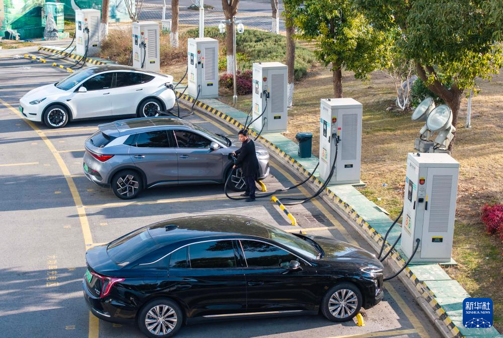 1月21日在浙江省嘉兴市南湖区一处停车场拍摄的充电站。新华社发(金鹏 摄)