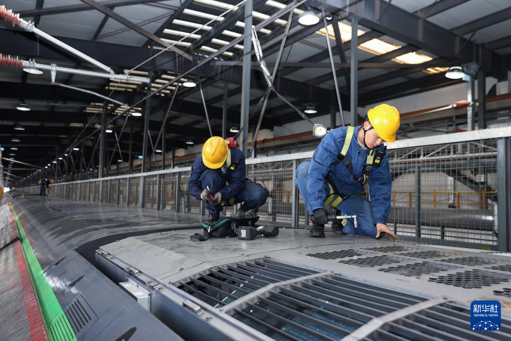 1月29日,昆明车辆段昆明西客车技术整备所内,工作人员在进行春运整备作业。新华社发(杨紫轩 摄)