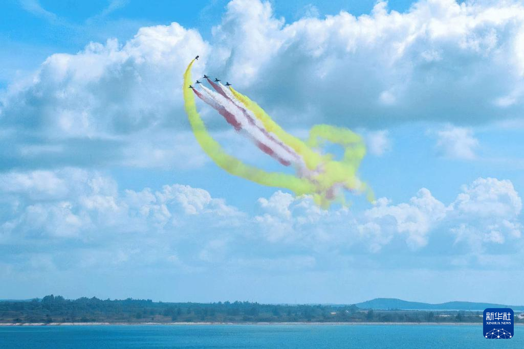 2月1日,在新加坡樟宜展览中心举行的新加坡航展媒体预演上,中国空军八一飞行表演队进行检验性飞行。新华社发(陈恺泽摄)