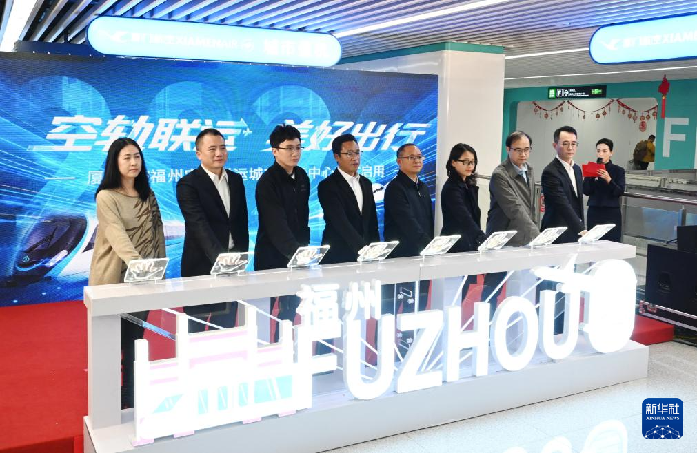 2月6日,在滨海快线福州火车站,厦门航空福州空轨联运城市服务中心启用仪式举行。新华社记者 林善传 摄