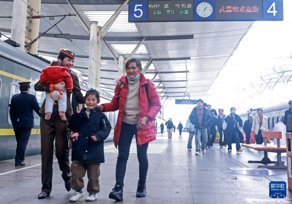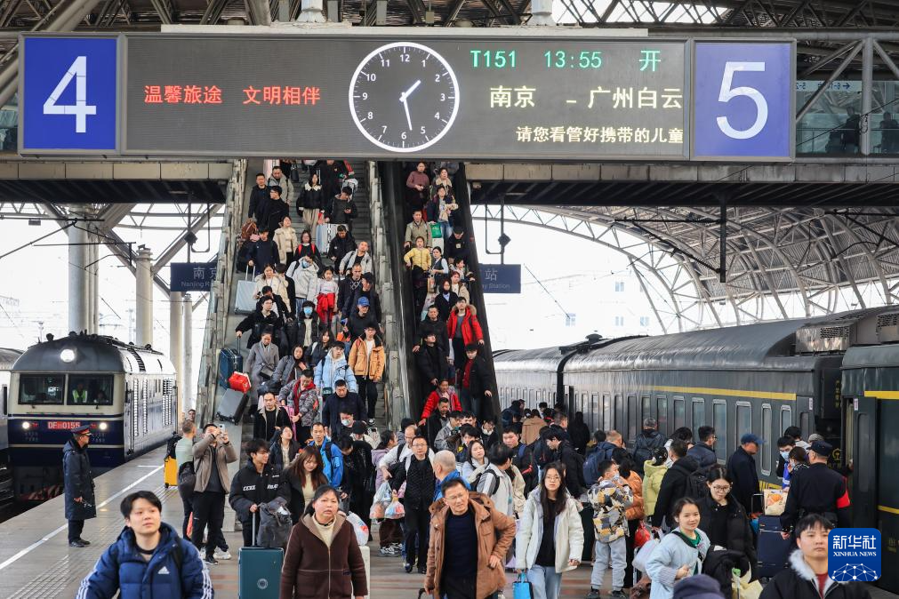 2月13日,旅客在南京火车站乘车出行。新华社发(苏阳摄)