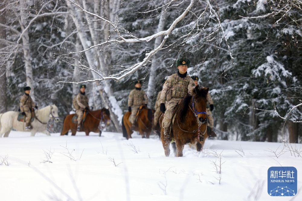 ↑ 2月15日,驻守在祖国西北边陲阿尔泰山深处的新疆军区扎玛纳什边防连官兵冒着严寒执行巡逻任务。新华社发(段伟 摄)