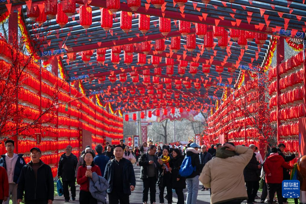 2月19日,游客在北京市海淀区凤凰岭第十三届新春非遗游园会上游览。新华社记者 胡竞文 摄