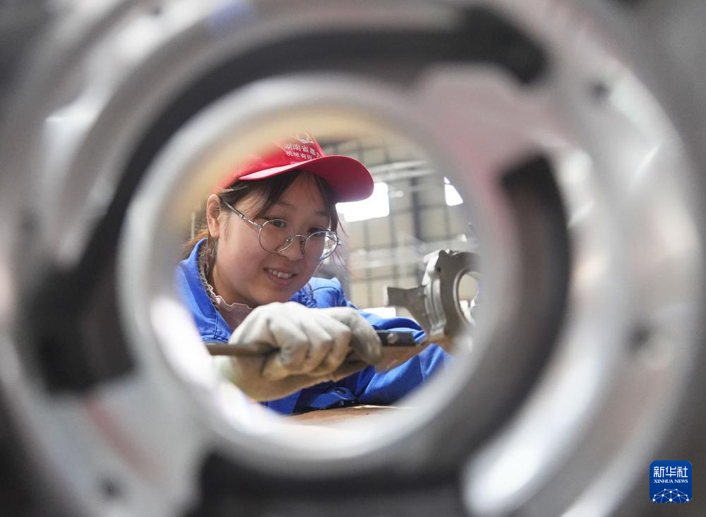 2月24日,在湖南省衡山县衡山高新技术产业开发区,湖南嘉力机械有限公司员工在生产线上工作。新华社发(曹正平摄)