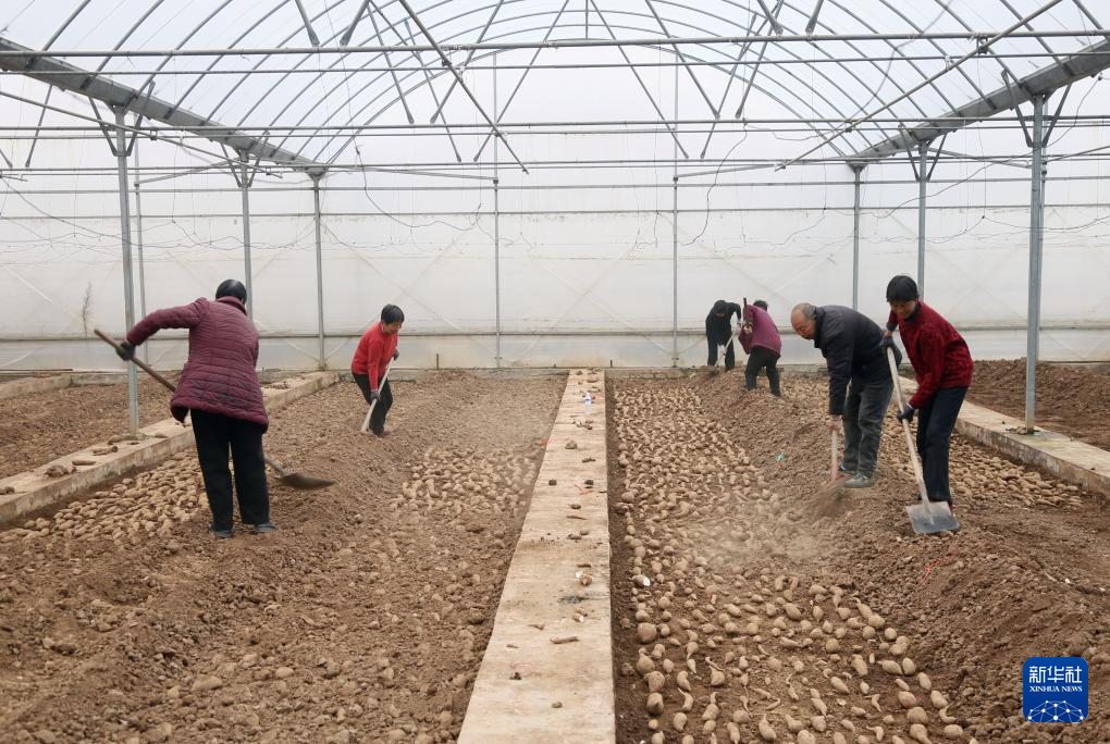 2月25日,河南省洛阳市汝阳县刘店镇沙坪村村民在温棚内培育优质红薯苗。新华社发(康红军摄)