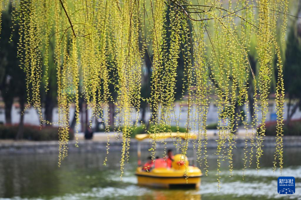 3月22日,游人在山东省临沂市郯城县郯子公园游玩。新华社发(张春雷摄)