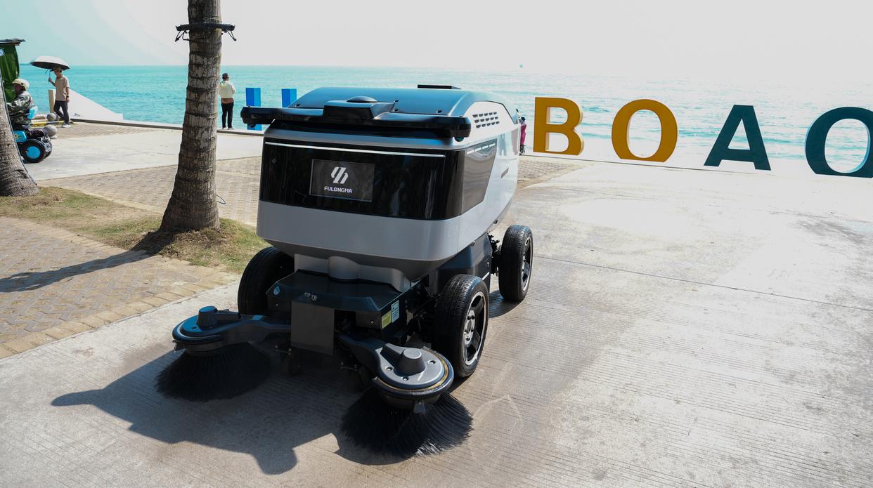 智能清扫机器人在海南省琼海市博鳌镇作业(3月25日摄)。新华社记者 刘莲芬 摄