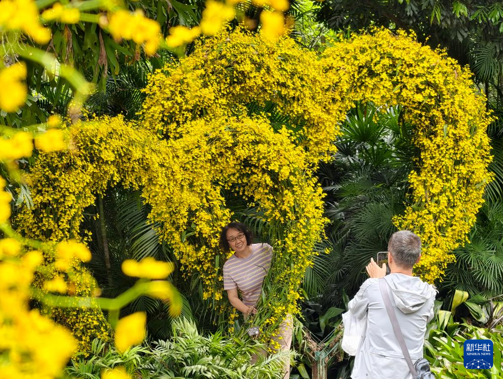 3月25日,游人在广西南宁市青秀山风景区赏花拍照。新华社发(喻湘泉摄)