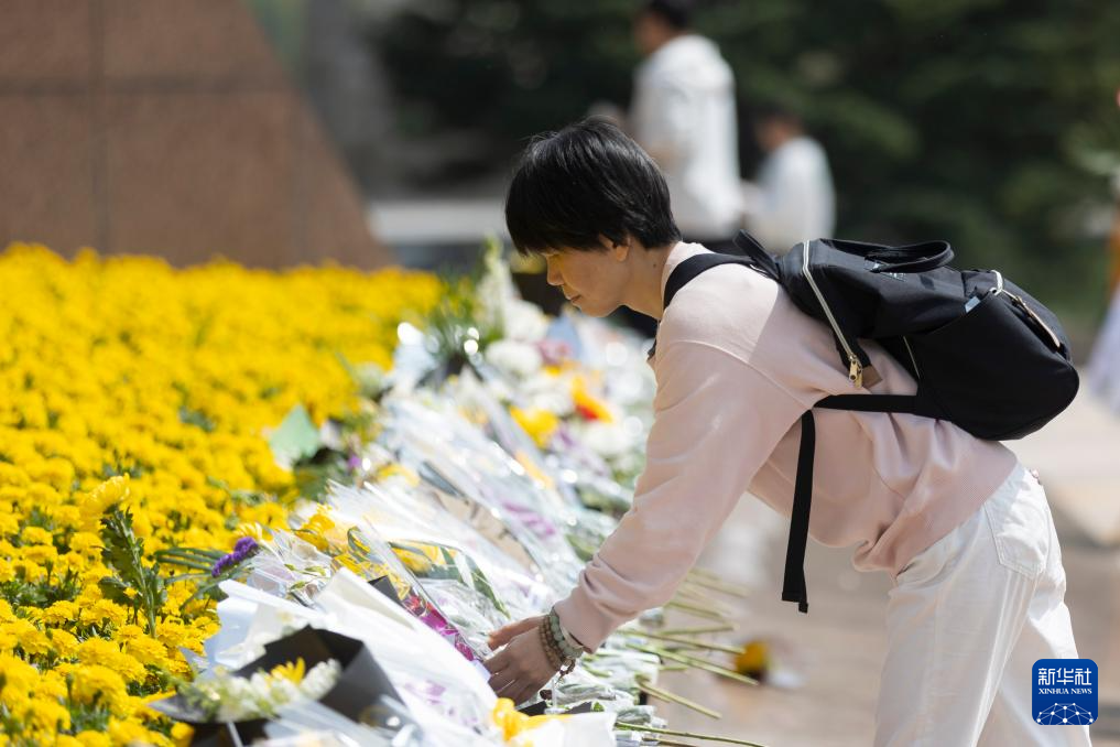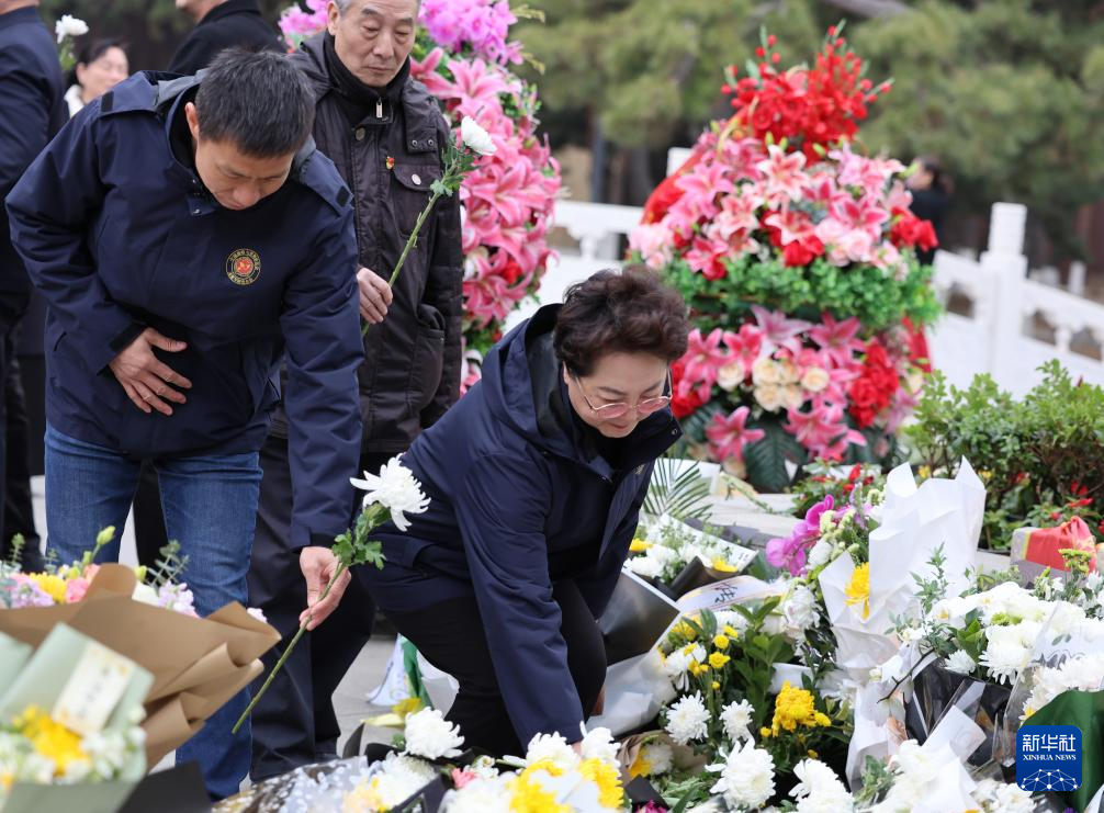 4月5日,人们在沈阳抗美援朝烈士陵园抗美援朝烈士纪念碑前敬献鲜花。新华社记者 韩赫 摄