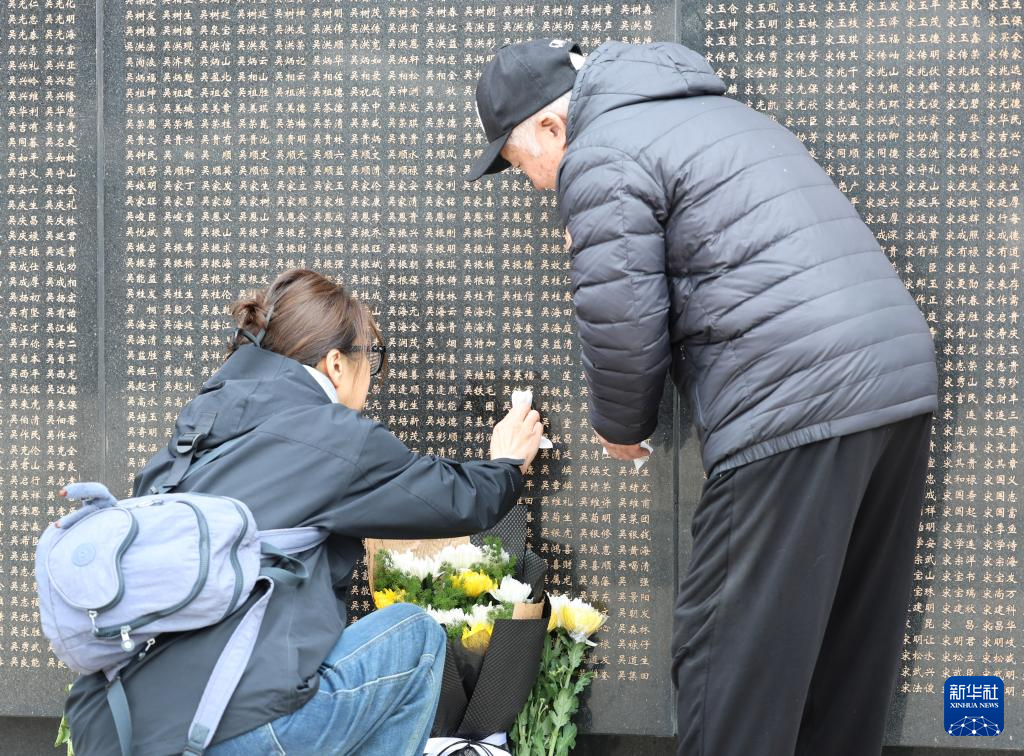 4月5日,烈士家属在沈阳抗美援朝烈士陵园擦拭烈士英名墙上的亲人名字。新华社记者 韩赫 摄