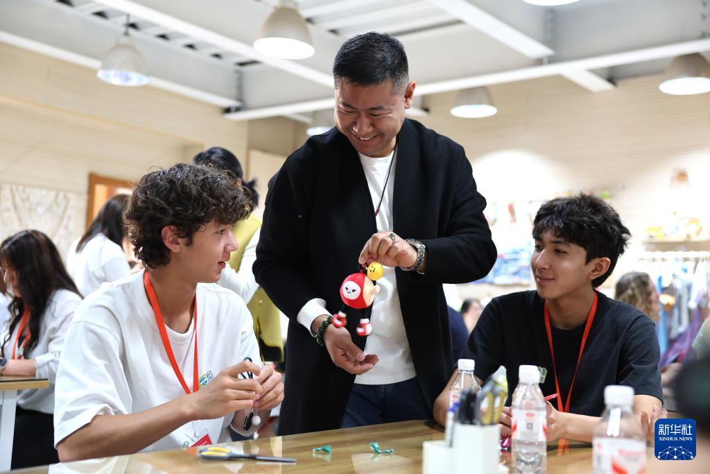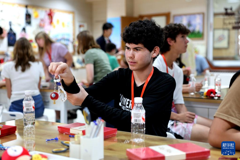 4月11日,美国学生在石家庄外国语学校体验手工课。新华社记者 卢烨 摄