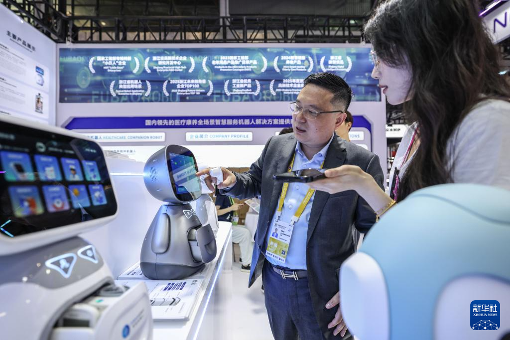 4月13日,参观者在第六届消博会主会场了解智能机器人产品。新华社记者 张丽芸 摄