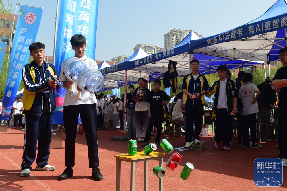 4月18日,河北省河间英华学校举办首届校园科技节活动,学生们参与科学实验、参观智能设备,培养科学兴趣和应用能力。