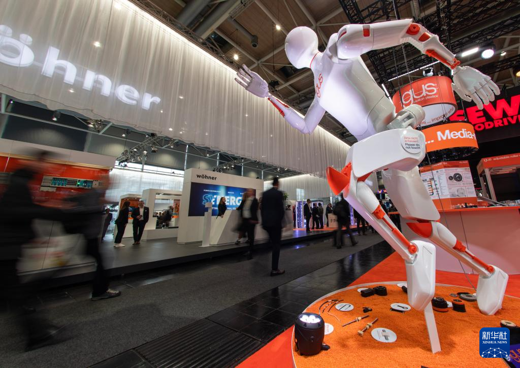 4月20日,人们在德国汉诺威工业博览会参观人形机器人。新华社记者 张豪夫 摄