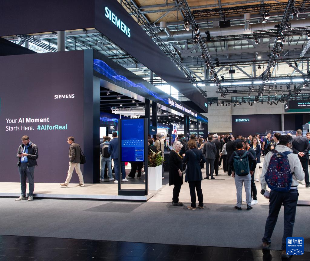 4月20日,人们在德国汉诺威工业博览会西门子展区参观。新华社记者 张豪夫 摄