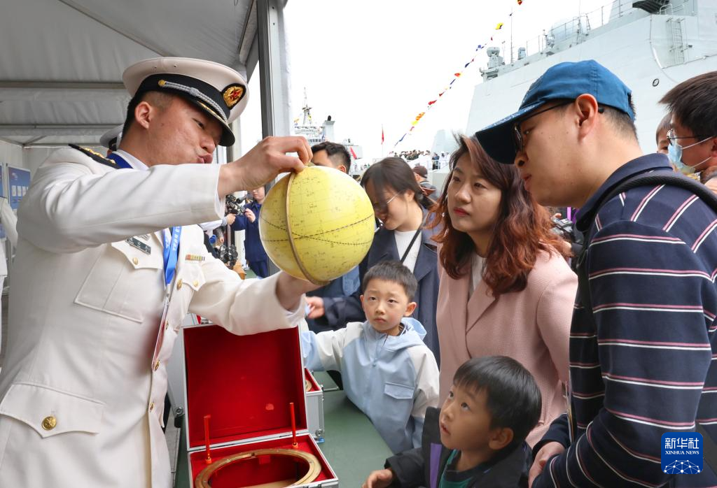 4月21日,参观者在舰艇开放活动上参观。新华社记者 方喆 摄
