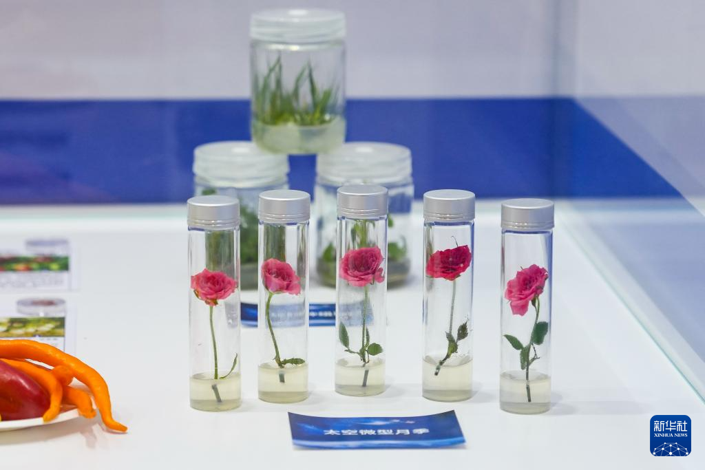这是4月24日在航天科普展览上拍摄的太空微型月季。新华社记者 王曦 摄