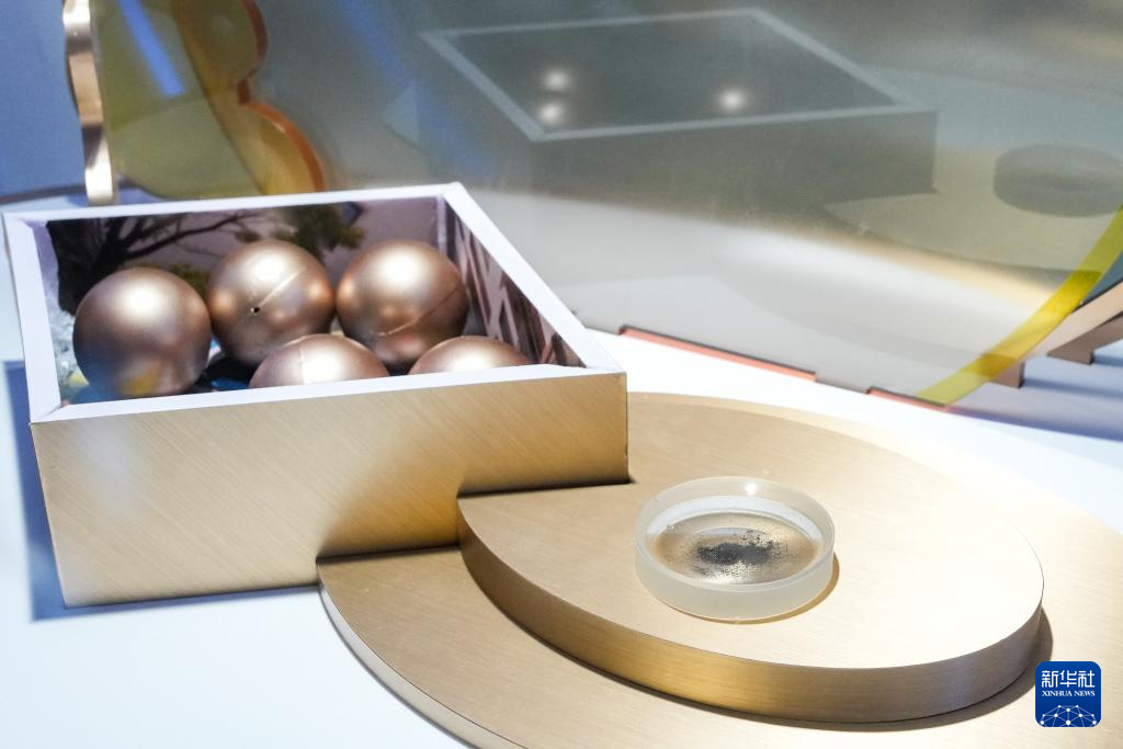 这是4月24日在航天科普展览上拍摄的嫦娥六号月壤样品。新华社记者 王曦 摄