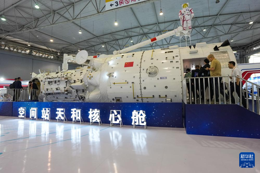 4月24日,参会嘉宾在航天科普展览上参观空间站天和核心舱。新华社记者 王曦 摄
