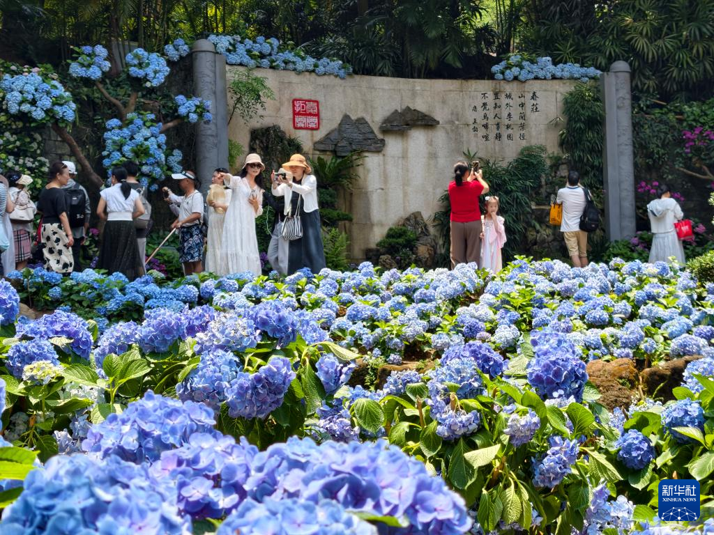 4月25日,游人在广西南宁市青秀山风景区绣球谷赏花游玩。新华社发(喻湘泉摄)
