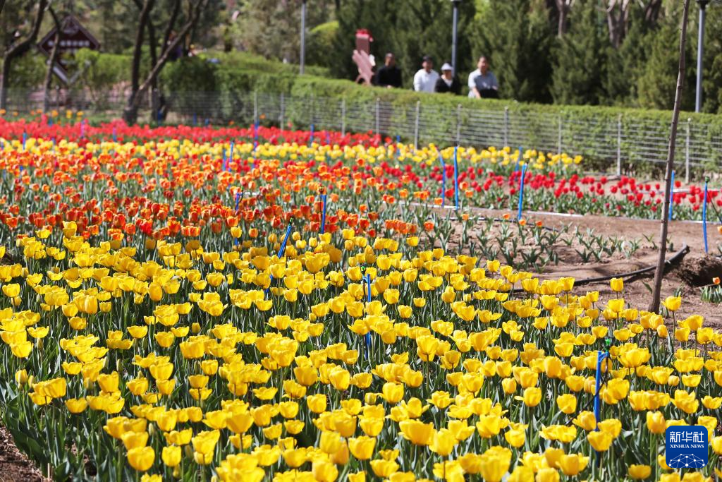 4月25日,市民在甘肃省定西市安定区一处公园内赏花游玩。新华社发(王克贤摄)