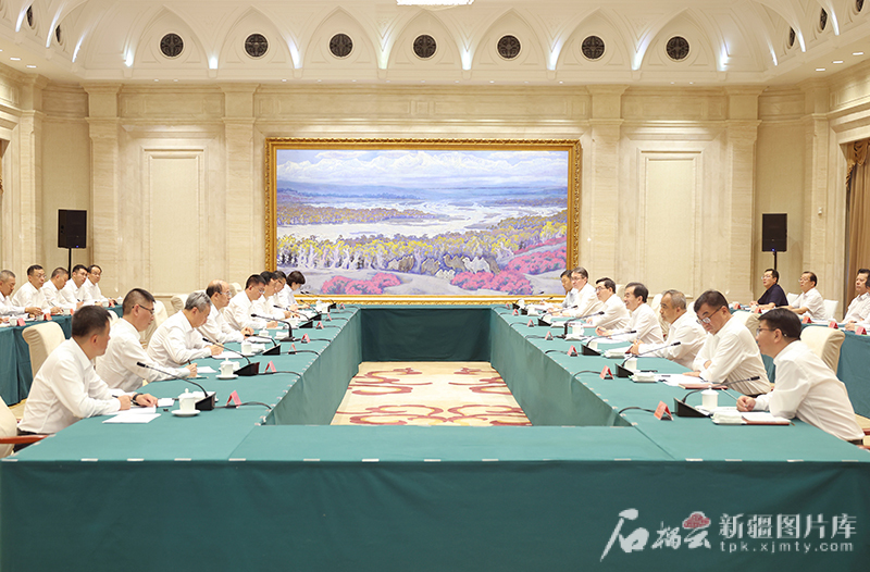 8月13日,自治区与中国石油天然气集团合作机制第三次会议在乌鲁木齐举行。自治区党委书记陈小江、中国石油天然气集团董事长戴厚良出席会议并讲话。石榴云/新疆日报记者 崔志坚摄
