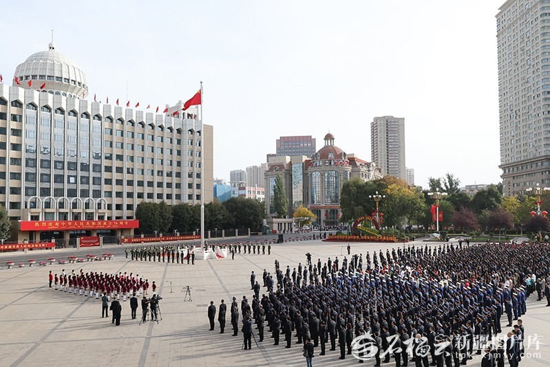 新中国76年来,党领导人民自力更生、接续奋斗,取得彪炳史册的辉煌成就。今年国庆节恰逢自治区成立70周年。70年来,在党中央坚强领导下,新疆面貌发生了翻天覆地的巨大变化。进入新时代,以习近平同志为核心的党中央引领新疆各项事业取得历史性成就、发生历史性变革,各族人民像石榴籽一样紧紧抱在一起、昂首阔步走在中国式现代化道路上。参加仪式的各族干部群众表示,新的历史起点上,将深入学习贯彻习近平总书记听取自治区党委和政府工作汇报时的重要讲话精神和对自治区成立70周年的重要题词精神,完整准确全面贯彻新时代党的治疆方略,聚焦社会稳定和长治久安总目标,进一步铸牢中华民族共同体意识、推进中华民族共同体建设,团结一心,感恩奋进,为建设团结和谐、繁荣富裕、文明进步、安居乐业、生态良好的社会主义现代化新疆贡献更大力量。