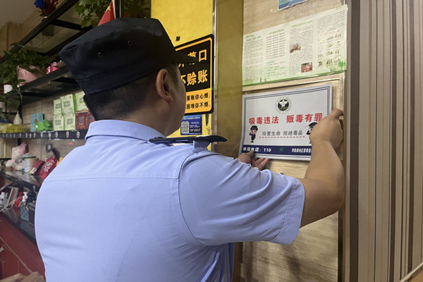 活动中,工作人员深入辖区酒店、宾馆、KTV等涉毒高危场所开展清查整治,围绕重点场所是否存在涉毒违法犯罪活动、是否容留吸毒人员、是否落实禁毒管理责任等情况进行了全面清查,督促场所责任人切实落实禁毒工作责任,严防发生聚众吸毒、引诱教唆他人吸毒等涉毒违法行为。同时,工作人员们向群众发放宣传资料,开展面对面宣传,引导群众正确认知“毒品”、“麻精药品”、“精神药品”等之间的联系和区别,并告诫广大居民朋友要谨慎交朋友,不要进入治安复杂的场所。