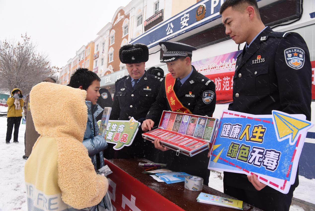 1月24日,哈巴河县公安局禁毒部门以“7号集市”开幕活动为契机,积极联合团县委、禁毒志愿者开展禁毒宣传活动。