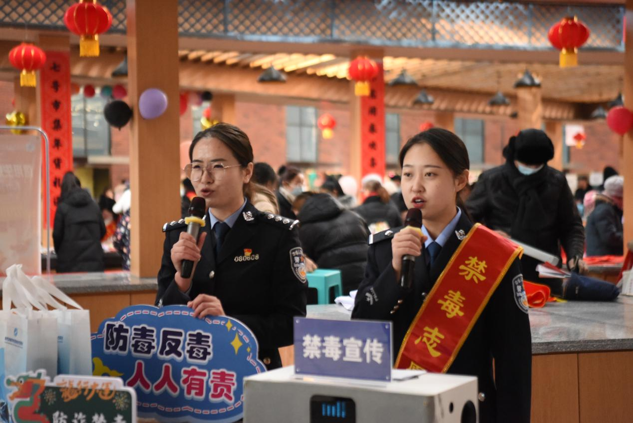2月8日,哈巴河县公安局禁毒部门在春节前夕,积极组织民辅警到东兴综合农贸市场开展迎新春禁毒宣传活动。