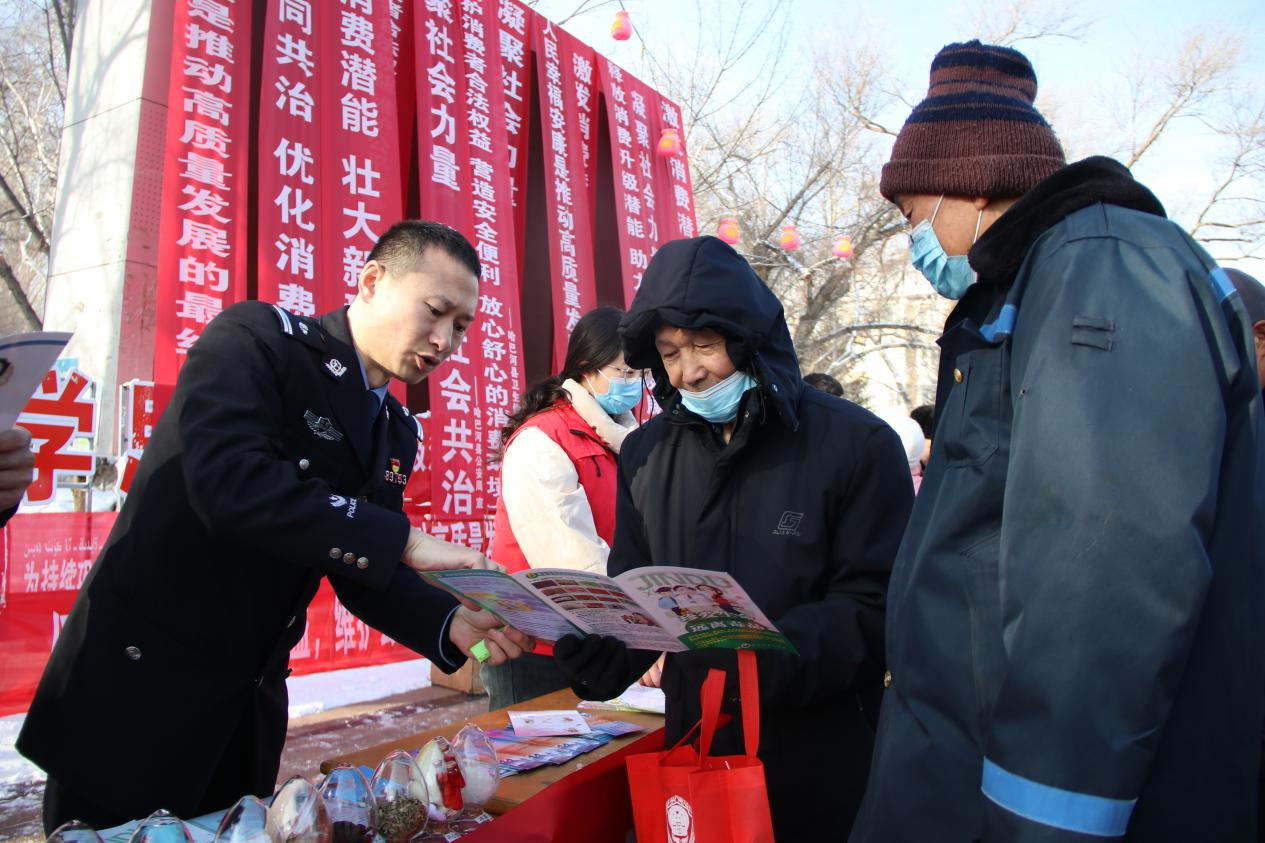 3月15日,哈巴河县公安局禁毒部门以“3·15”国际消费者权益日为契机,联合市监局、卫健委等部门在街心公园开展禁毒普法宣传活动。