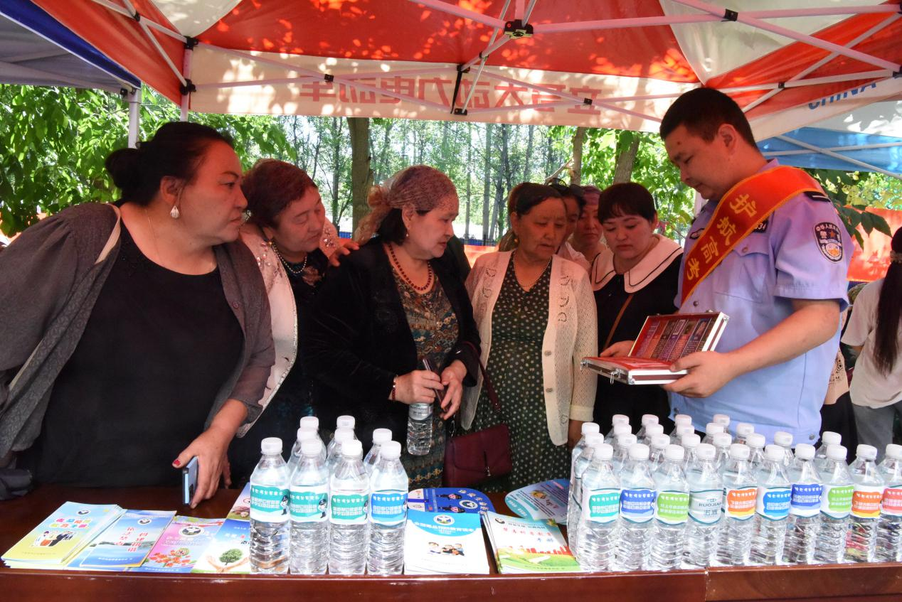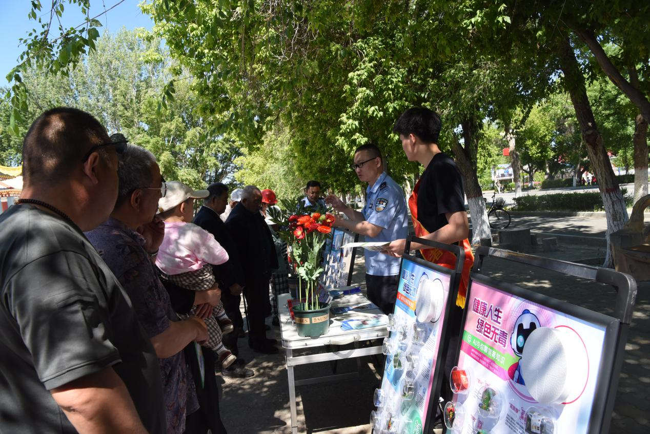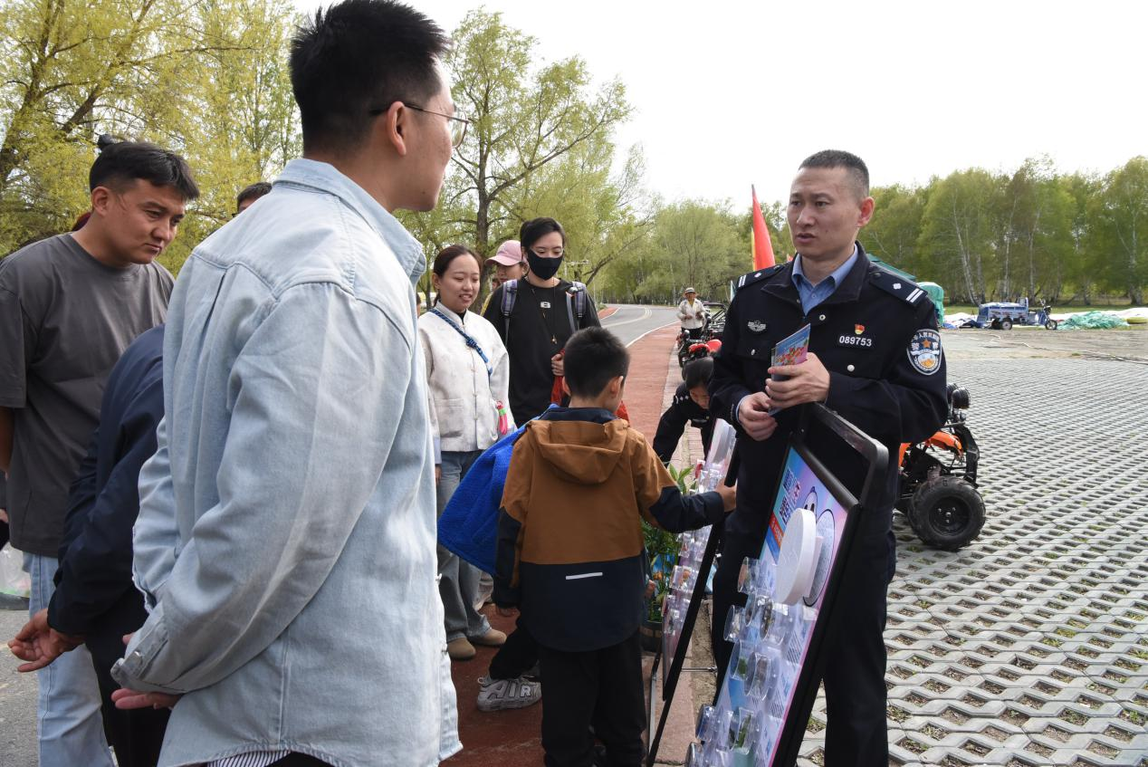 5月1日,哈巴河县公安局禁毒部门走进白桦林景区开展“健康人生、绿色无毒”主题宣传教育活动,为居民、游客讲解毒品对个人、家庭和社会的严重危害。