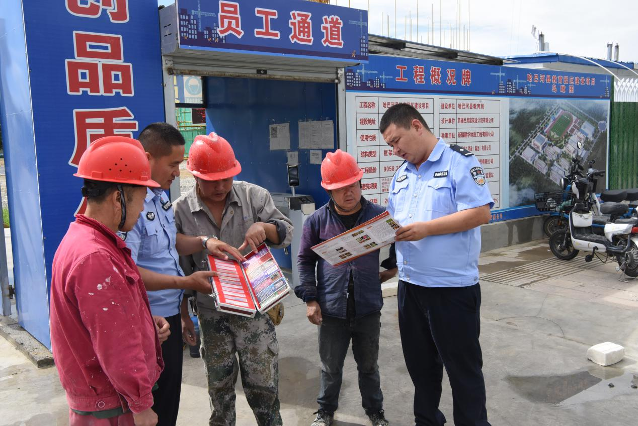 7月3日,哈巴河县公安局禁毒部门前往辖区建筑工地开展禁毒教育宣传活动。